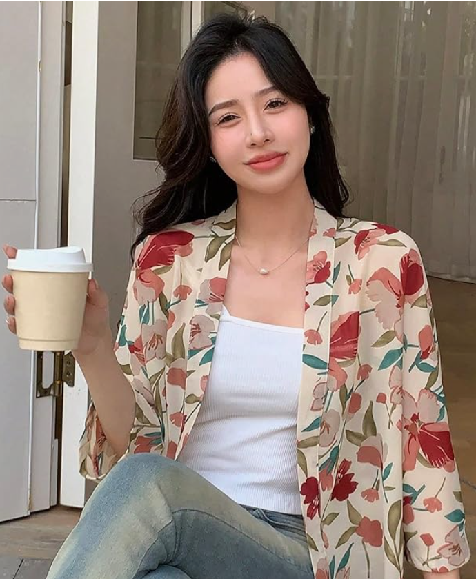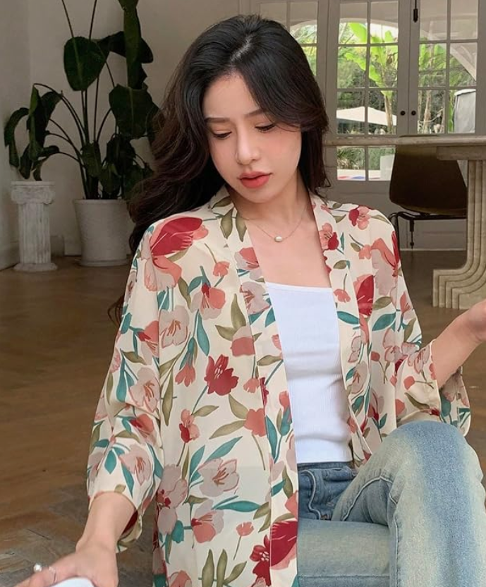 - Casual Outfit: Pair your georgette floral print shrug with a simple white tank top and jeans for a casual yet chic look. Add some sandals or sneakers to complete the ensemble.
